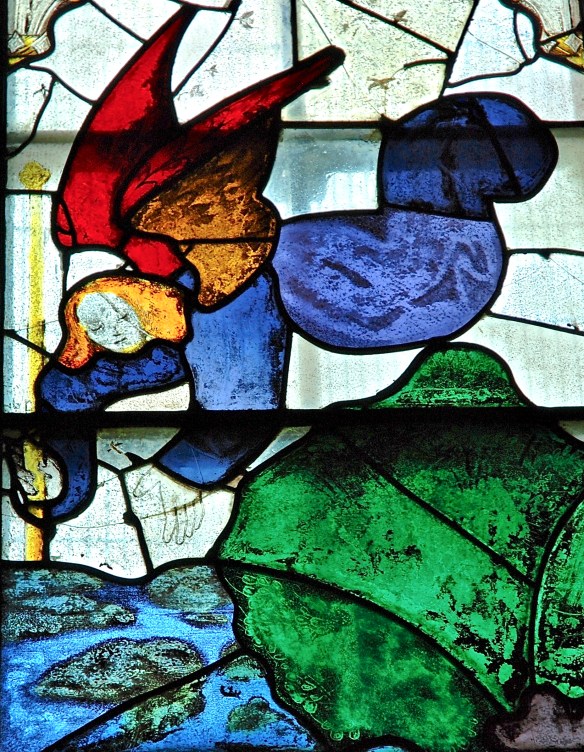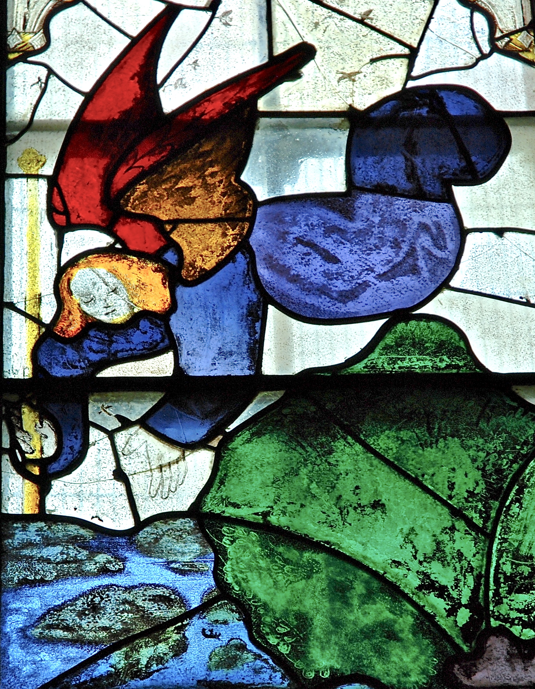Angel guiding Joshua (detail, c. 1500), St. Mary’s, Fairford, Gloucestershire, UK (Photo by Jim Friedrich)