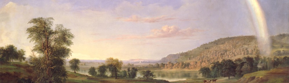 I have always loved Church’s painting. It’s an exuberant celebration of American wilderness, and scholars resist literalizing it into a prophecy of war. But for me, on a purely sensory and emotional level, the contrast between Duncanson’s rainbow and Church’s dying day captures the essence of this pivotal American moment. Asked to choose between rainbow and twilight, we chose the brighter thing.