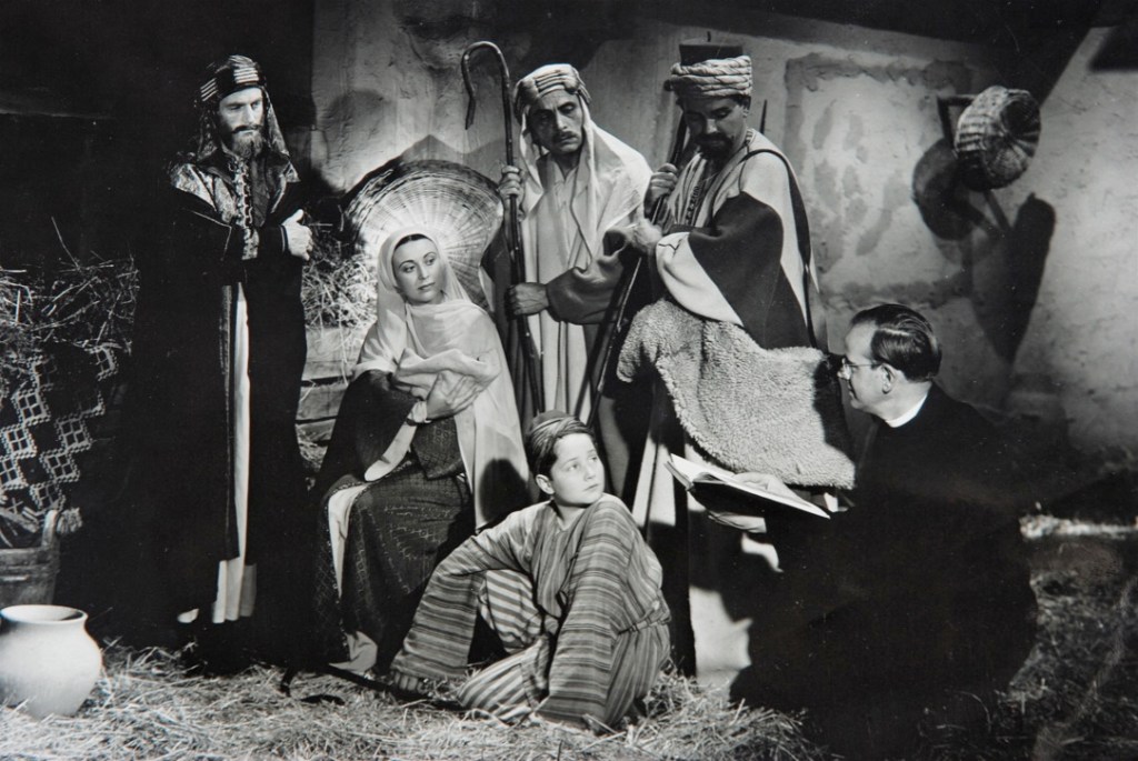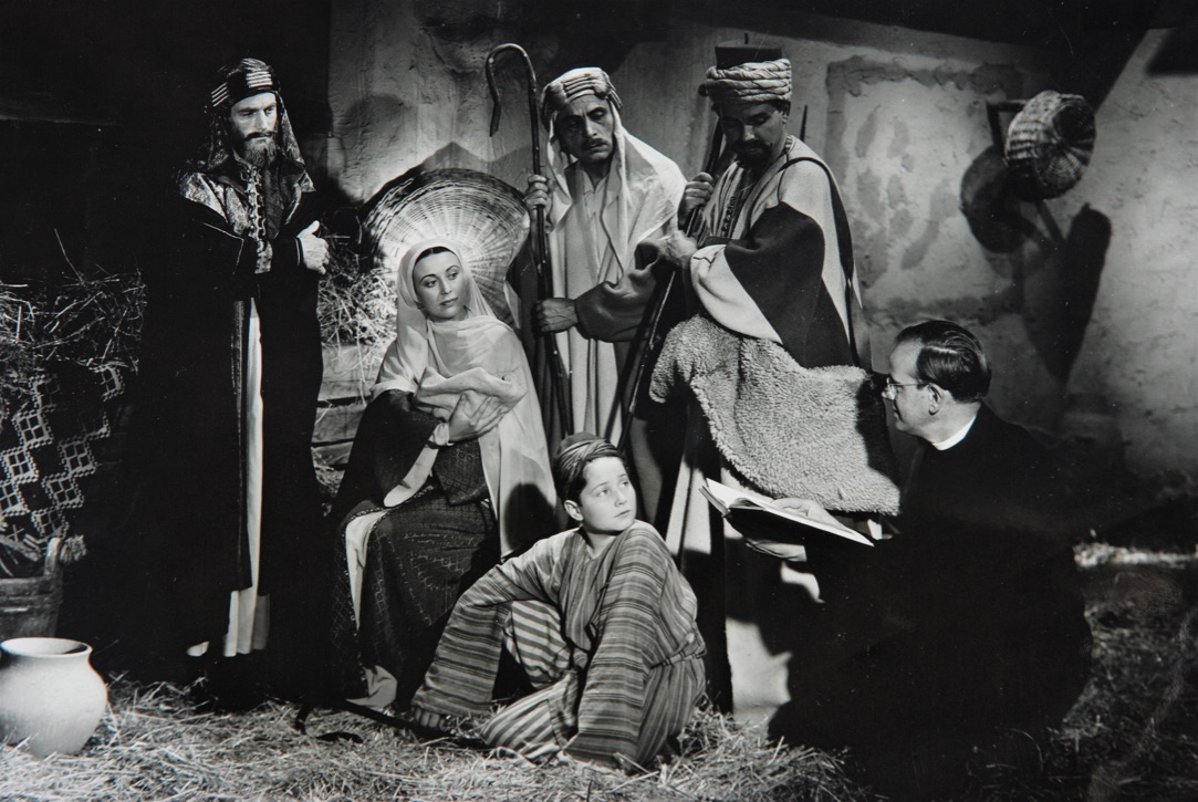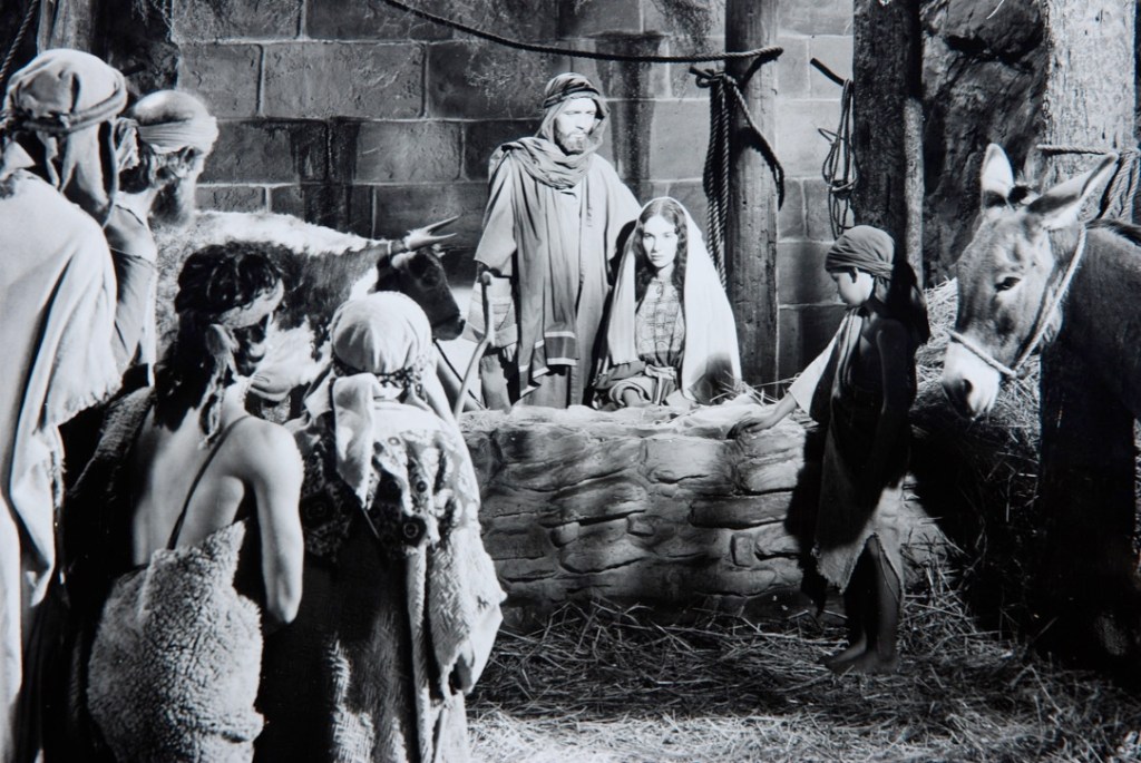 In the film, I have a dazed look on my face. I was literally blinded by the light on the Hollywood soundstage where the interiors were shot. Film stock in those days was not as light-sensitive as our camera phones. It required intense illumination to register a proper image. A big row of Klieg lights set up behind the manger threw such a blaze into my eyes that I could barely see the Holy Family. When I hear Luke’s gospel report that “the glory of the Lord shone all around” the shepherds, the indelible memory of those lights at Goldwyn Studios comes to mind.