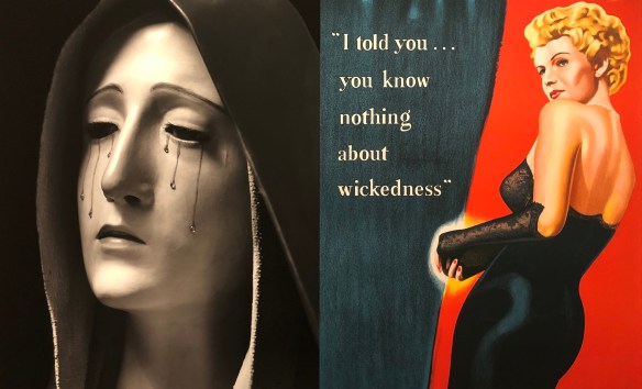 Such revisions of sacred iconography can be challenging, bewildering, or even disturbing. And any erosion of the “aura” of religious symbols, especially in this secular age where technology’s infinite reproducibility of images has revoked all the Christian copyrights, is a subject worth thoughtful consideration. But the persistence of sacred tropes, even when trivialized or misappropriated, is itself a testimony to their power. The logic of the Incarnation means that the divine can become indistinguishable from the human, erasing the boundary between sacred and profane.