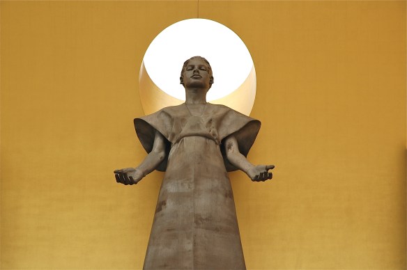 The welcoming Virgin above the portal of Our Lady of the Angels, Los Angeles (sculpture by Robert Graham).